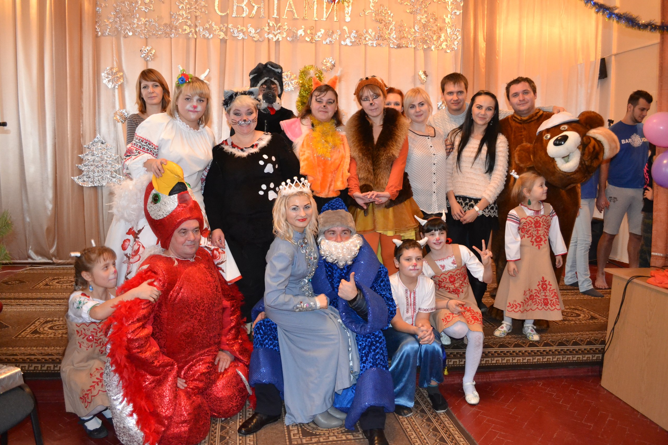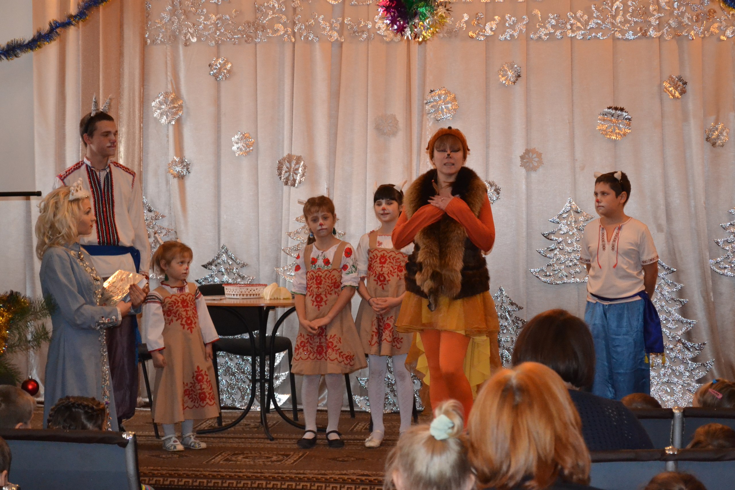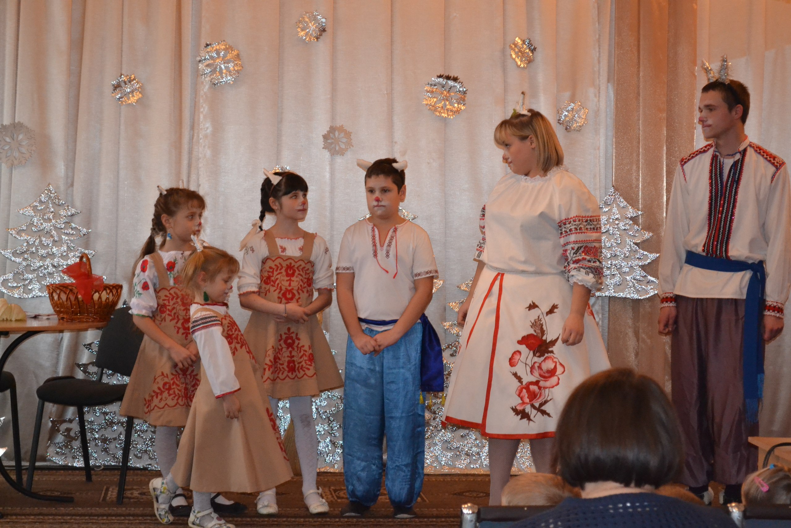 У День Святого Миколая хлопці виступають перед малюками з яскравою театральною постановкою.