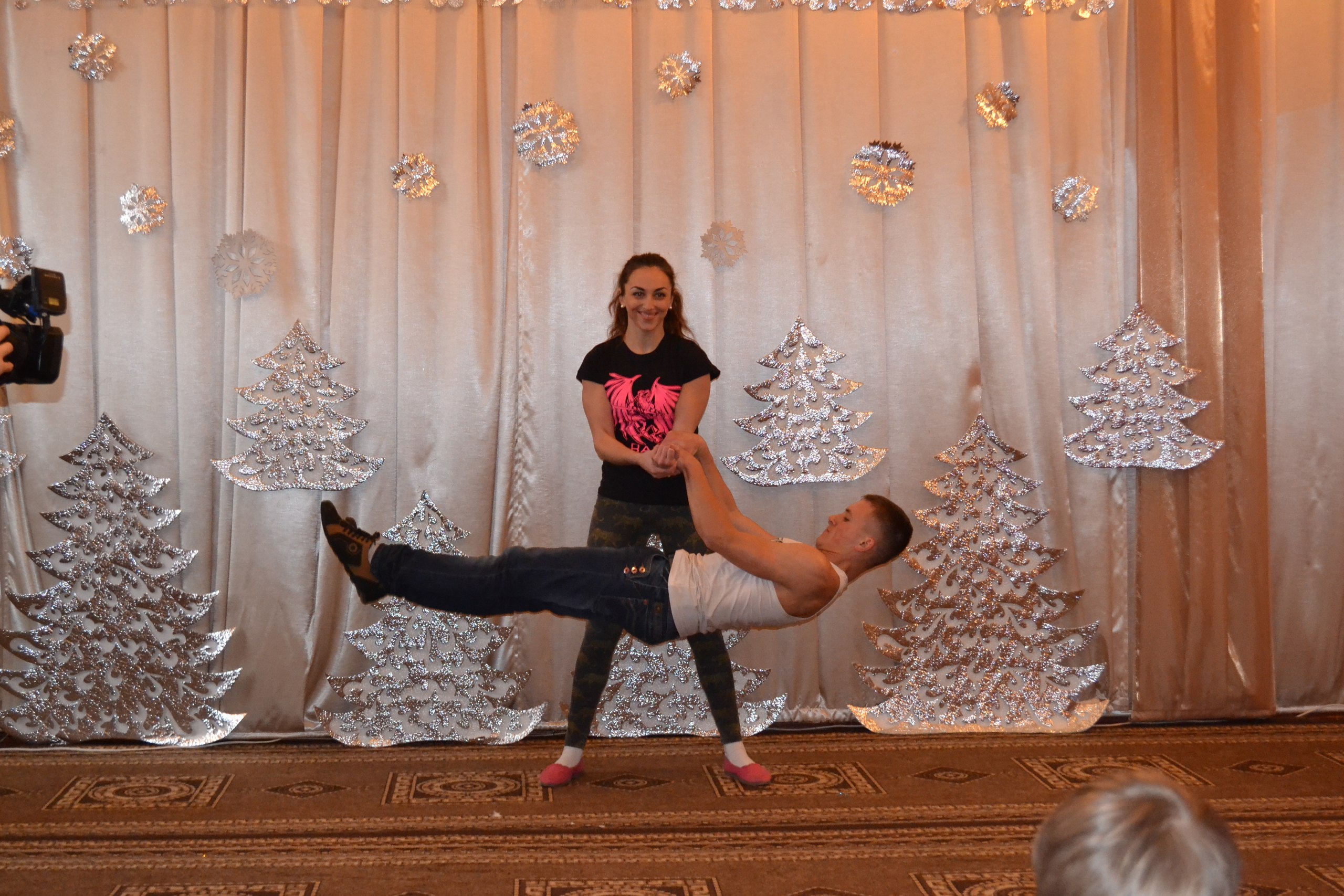 У Магдалинівка хлопці приїхали не самі, а з командою кращих новомосковських воркаутров, щоб порадувати вихованців навчально-реабілітаційного центру та театралізованої казкою, і справжнім спортивним шоу. Також хлопці з інтернату отримали смачні подарунки від активної молоді Новомосковського трубного.